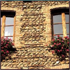| Particulièrement remarquables en Pays de Bièvre-Valloire : les constructions traditionnelles en galets roulés Abondamment mis à jour lors du travail de culture, ou stockés dans le lit des rivières, les galets sont primitivement utilisés pour réaliser les soubassements. À partir du milieu du19es., l’apparition de liant à maçonner, de fabrication industrielle (chaux, ciment), est à l’origine de nouvelles utilisations du galet : le montage en épis (en fougère ou en arêtes de poisson) permet de construire des lits réguliers et d’asseoir une meilleure stabilité du mur. Le blocage des ouvertures est assuré soit par des jambages en bois, soit par des briques de parement ou des pierres équarries. |